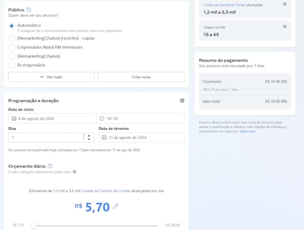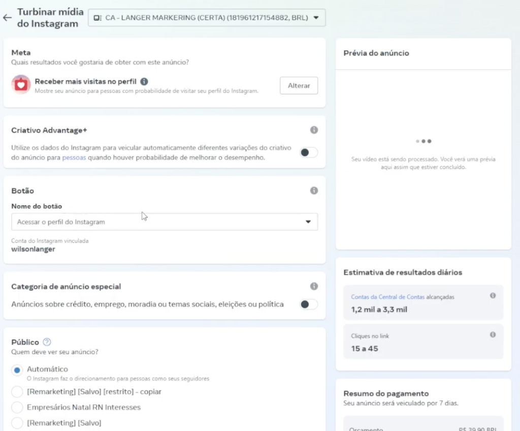 De forma geral “turbinar” pelo instagram e pelo meta business suit é muito parecido, mas ainda assim recomendamos pelo business suit, e se você tiver criado públicos previamente dentro da sessão de “publicos” no meta business suite você consegue por exemplo anunciar para seguidores, ou visitantes do perfil, é um grau a mais de refinamento e estratégia que pode te ajudar.